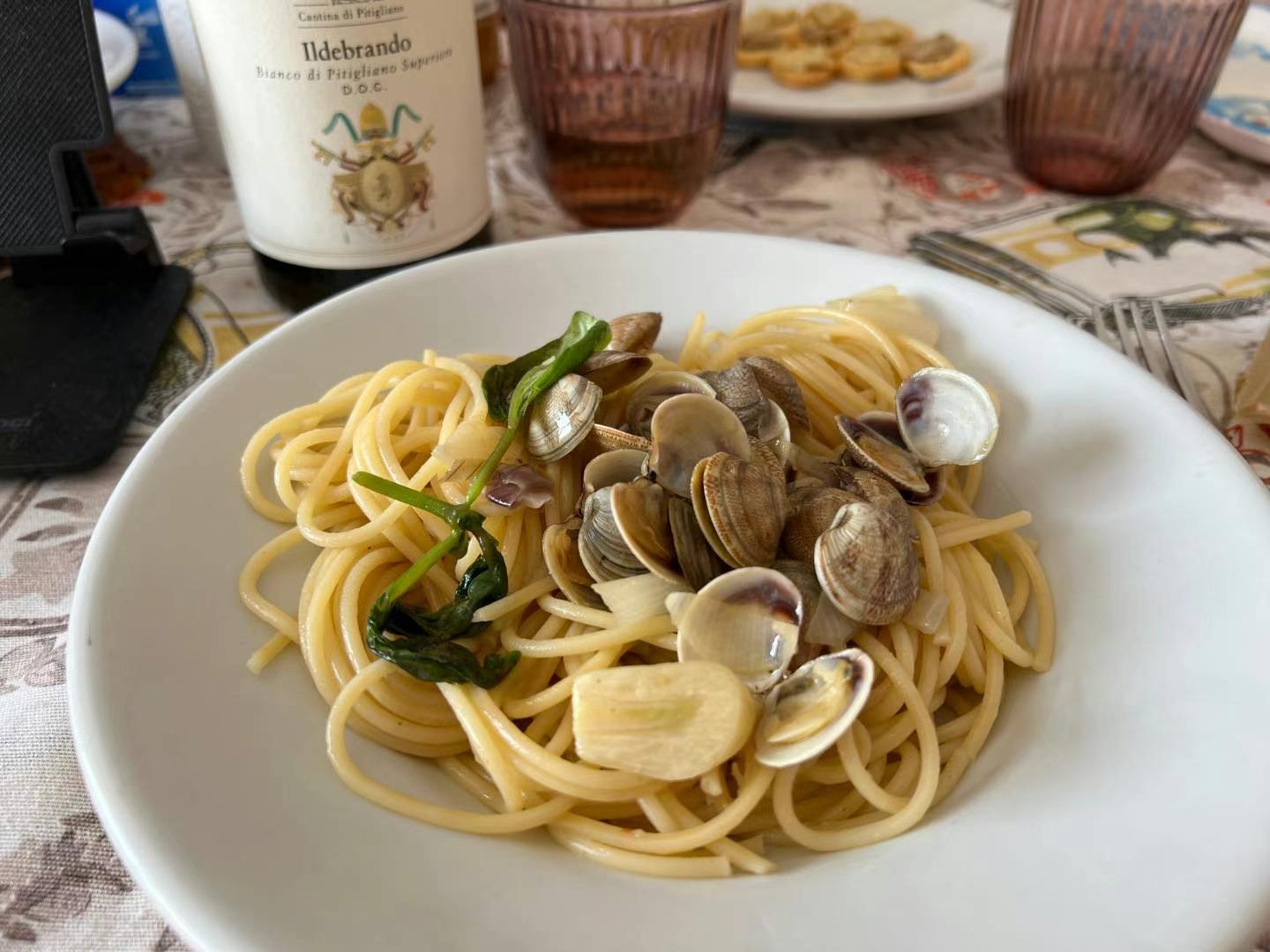 - Without forget the good of an homemade seafood pasta with a bottle of white wine ..