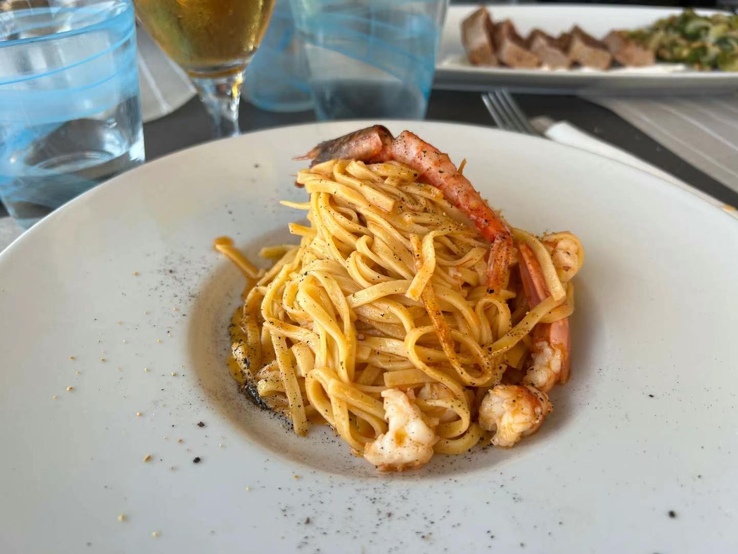 - Without forget an homemade seafood pasta with a bottle of good white wine ..